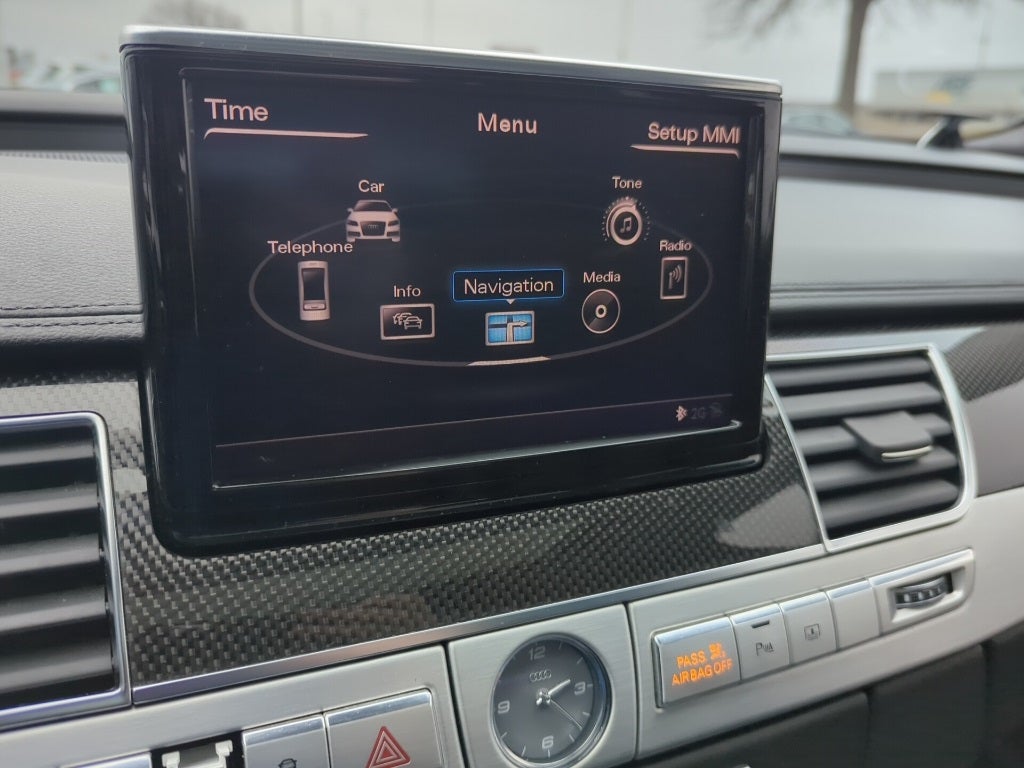 - Radio: AM/FM Stereo w/DVD Navigation -inc: Audi connect w/six-month trial subscription, Audi MMI navigation plus w/voice control system, Audi music interface w/iPod integration includes one cable for iPod connection and one USB slot or AUX input, Bose premium surround sound system w/AudioPilot, 14 speakers including center speaker, subwoofer and total output of 630 watts, and Bluetooth® wireless technology preparation for mobile phone and streaming audio