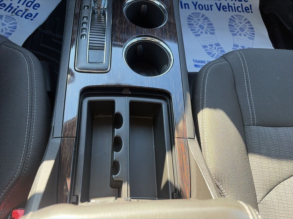 - Console, front center with 2 cup holders, covered storage bin and sliding armrest with storage