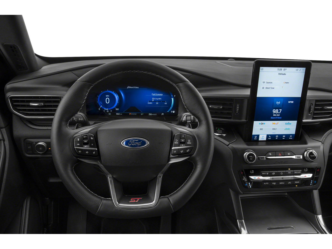 This Explorer is equipped with the ST High Package (Equipment Group 401A), transforming the cabin into a luxury command center: