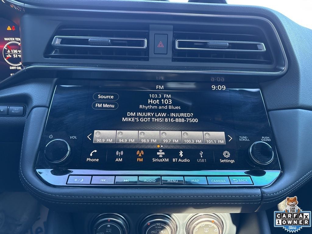 - Radio: Bose Audio System w/8 Speakers -inc: 9" touchscreen w/navigation, active noise cancellation (ANC), active sount enhancement (ASE), Bluetooth® hands-free phone system, streaming audio via Bluetooth®, SiriusXM Radio, wireless Apple CarPlay, Android Auto, hands-free text messaging assistant, voice recognition, Siri Eyes Free, 1 USB type-A, 1 USB type-C, Alexa connectivity and NissanConnect services w/Wi-Fi hotspot