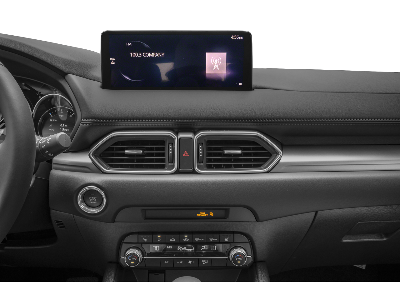 Enjoy Mazda Radar Cruise Control, push-button start with Advanced Keyless Entry, smart device remote start, and a touchscreen infotainment system with Bluetooth® connectivity.