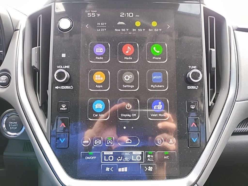 - Radio: Subaru 11.6" Multimedia Plus System -inc: AM/FM stereo, HD Radio, multi-touch gesture high resolution display screen, voice activated controls, Bluetooth® audio streaming and hands-free phone connectivity, Bluetooth® hands-free SMS text messaging connectivity, iPod control capability, smartphone integration: wired and wireless Android Auto w/full screen view and wireless Apple CarPlay w/full screen view, USB and Over The Air (OTA) audio system update, steering wheel audio system and Bluetooth® control switches, 6 speakers (2 dash panel tweeter, 2 front door and 2 rear door), illuminated 3.5mm auxiliary input jack, illuminated front USB A and C input/charge ports, connected services operation indicator, SOS emergency assistance: red SOS button and enhanced roadside assistance: blue i-button